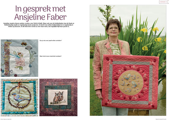 En dat is nog niet alles! In deze editie duiken we in het verhaal van Ansjeline, een creatieve ziel met een passie voor kleur en ambacht. In een persoonlijk interview vertelt ze waar ze haar inspiratie vandaan haalt, wat haar drijft en deelt ze een aantal van haar mooiste eigen creaties. Haar verhaal lees je vanaf pagina 60 – een must-read voor elke quiltfan.